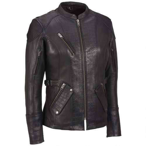 Designed with plenty of pockets, a convenient zip-out liner and cool croc detailing, this genuine leather moto jacket is a stylish choice for the femme fatale of the freeway. Pair with slightly ripped jeans and some great boots, and there is no one messing with that. Do not forget a pair of matching leather gloves. All our jackets have an ageless attitude and a slim, modern fit.